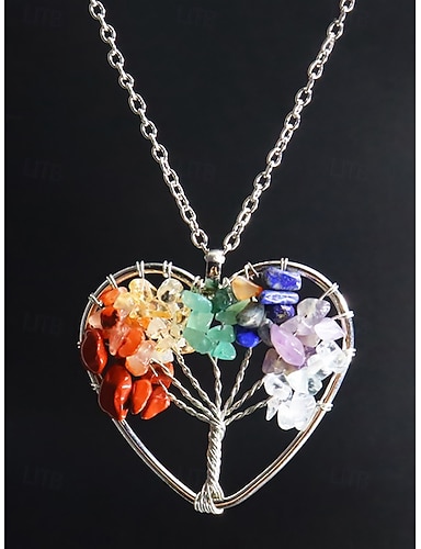 Collier pendentif arbre de vie fait main – chaîne en alliage avec perles de pierres précieuses naturelles, bijoux de guérison énergétique bohème pour femmes, cadeau spirituel pour le yoga et la méditation
