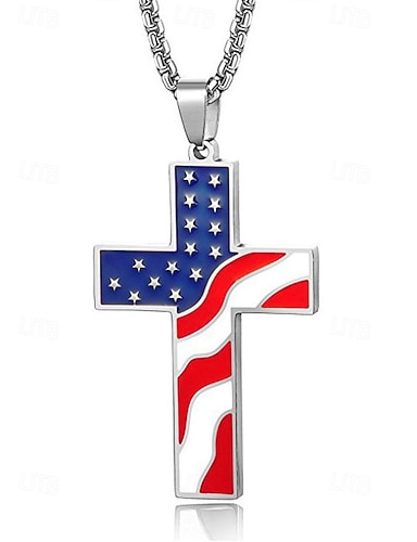 Collier pendentif croix en acier inoxydable pour homme, bijou religieux multicolore, chaîne chrétienne minimaliste pour le 250e anniversaire des États-Unis, la fête de l'indépendance, au quotidien, en voyage ou en vacances.