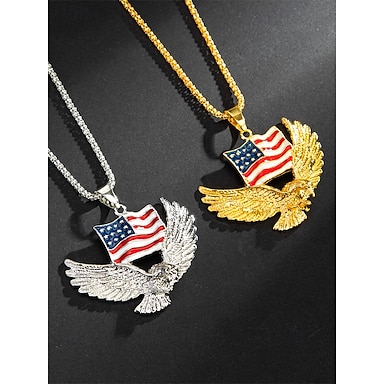 Collier pendentif en alliage avec drapeau USA et aigle pour hommes disponible en or et argent parfait pour les USA le Jour d'Indépendance et les tenues décontractées