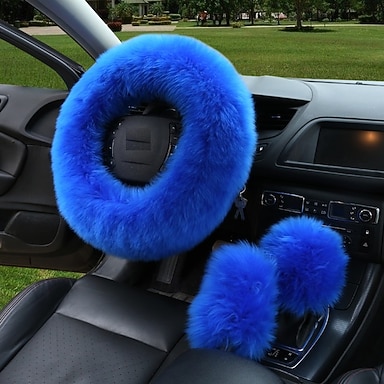 3 pièces AUTOYOUTH Laine Housse de volant de voiture Moelleux Ajustement universel Pour 14"1/2-15"