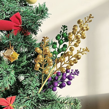 Lot de 10 tiges décoratives pour Mardi Gras, avec des baies pailletées violettes, vertes et dorées, idéales pour la confection de couronnes, le remplissage de vases, les compositions florales et Mardi