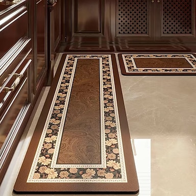 Tapis absorbants longs à motifs vintage - ensemble 2 pièces antitaches pour salle de bain, salon, &tapis de cuisine et de maison faciles d'entretien