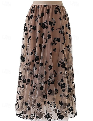 Femmes Mode Occasionnel Midi Taille haute Jupes Floral Imprimé Micro-Élastique Quotidien Rue Noir Café Grise Été Spandex Polyester
