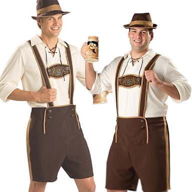 Oktoberfest Costume de cosplay Lederhosen Chemise Tenues Bavarois Munich Prairies Homme Festival Tissu de style traditionnel Chemisier Shorts Chapeau