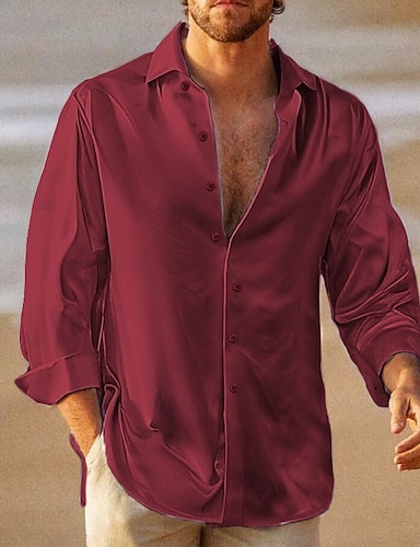 Homme Chemise Chemise en satin Chemise Décontractée Chemise Boutonnée Uni Mariage Vacances Noir Blanche Vin bleu marine manche longue Revers Printemps & Automne Vêtement Tenue