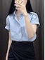 Femmes Chemisier Faux coton lin Couleur Unie Élégant Basique Occasionnel Manche Courte Col en V Hauts Réguliers Quotidien Bleu Noir Violet Vert Beige Été Printemps Automne
