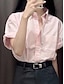 Femmes Chemisier Faux coton lin Froncé Boutons Couleur Unie Élégant Basique Occasionnel manche longue Col de chemise Hauts Réguliers Quotidien Bleu Noir Blanche Rose Claire Beige Printemps Automne