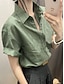 Femmes Chemisier Faux coton lin Plissé Couleur Unie Élégant Occasionnel Manche Courte Col ras du cou Hauts Réguliers Quotidien Fête Bleu Rose Claire Vert Kaki Beige Été