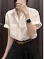Chemises et blouses en lin 70 % pour femmes, à boutons, unies, décontractées, à manches courtes et col rond, idéales pour le quotidien, les vacances et les sorties. Couleurs : jaune, vert, beige, été, printemps, automne.