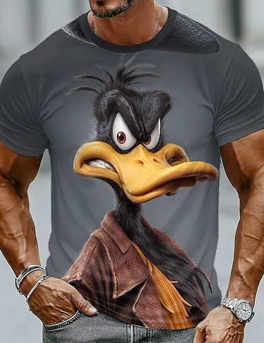 T-shirt homme à imprimé intégral, motif canard noir en colère, bras croisés, coupe slim, style streetwear décontracté, tailles S, M, L, XL, XXL, XXXL