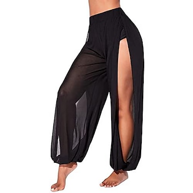 pantalon de yoga sarouel fendu sur le côté pour femme taille haute coupe ample pantalon de plage pantalon hippie pantalon de survêtement d'entraînement de danse (noir, xx-large)