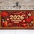 Nouvel an tapisserie Couverture de porte de garage Grande suspension bonne année 2026 Mignon 3D Soirée Outdoor Vacances Arrière-plans de prise de vue Yard Décoration d'intérieur
