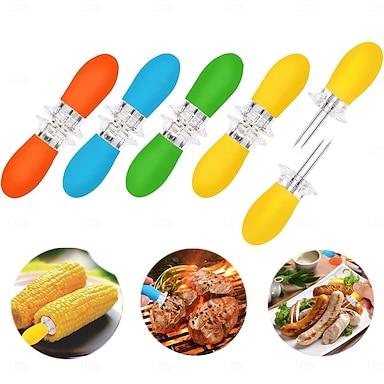 10 supports à épis de maïs en acier inoxydable avec système d'emboîtement, brochettes et fourchettes pour la cuisine maison, le camping et les barbecues (multicolores)