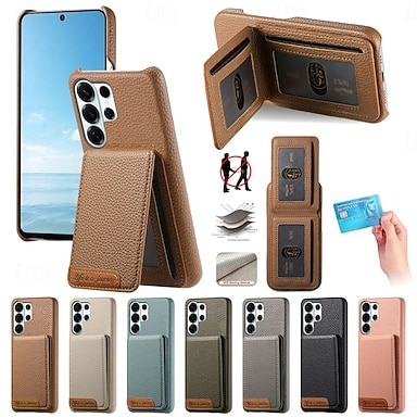 téléphone Coque Pour Samsung Galaxy S26 S26 Plus S26 Ultra Coque Arrière avec Support Support Emplacement Carte Rétro TPU faux cuir