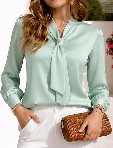Femmes Chemise Chemise d'été Chemise Décontractée Hauts en mousseline de soie Froncé Nœud devant Perlé Couleur Unie Uni Élégant Vacances Mode manche longue Cravate au cou Hauts Réguliers Quotidien