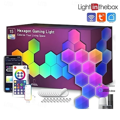 Lumières hexagonales intelligentes LED Smart Light lumière de jeu hexagonale DIY avec contrôle à distance par application panneaux lumineux RGBIC synchronisés à la musique pour la chambre de jeu la