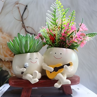 Pot de fleurs succulentes en forme de guitare à double swing, jardinière en résine de style nordique, ornement de jardin créatif pour plantes d'intérieur et d'extérieur, balcon, terrasse, bureau,