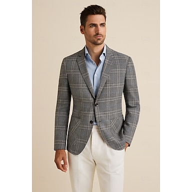 Homme Veste blazer École Formel Performance Classique Toutes saisons Polyester Viscose Plaid Sans repassage Boutonnage simple deux boutons veste Café Gris