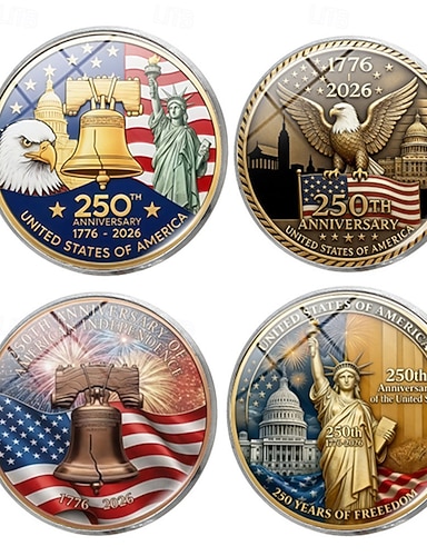 Pièce commémorative du 250e anniversaire des États-Unis - Pièce de collection en édition limitée (1776-2026) représentant un aigle, la cloche de la Liberté et le drapeau américain.