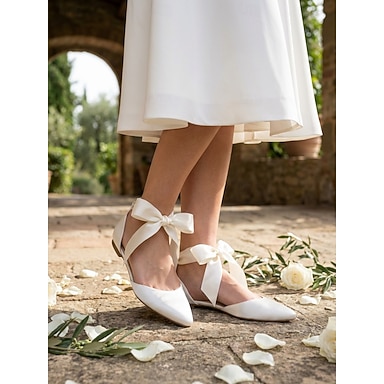 Chaussures élégantes en satin avec nœud pour demoiselles d'honneur – escarpins pointus chics pour mariages et occasions spéciales