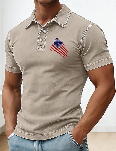 4 juillet 2026, 250e anniversaire Homme Drapeau Américain Polo Chemise délavée à l'acide 100% Coton Manche Courte Polos Chemises à Col Occasionnel Extérieur Fête Impression 3D Boutons Printemps & Été