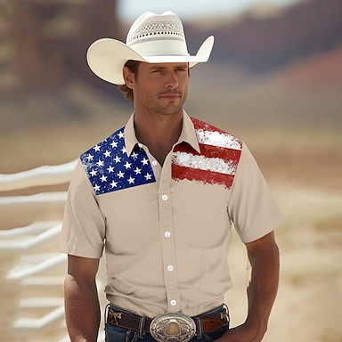 Homme Drapeau Drapeau Américain Chemise Chemise Western Chemise de cow-boy Manche Courte Style Western Tribal Été Printemps Col de chemise Kaki