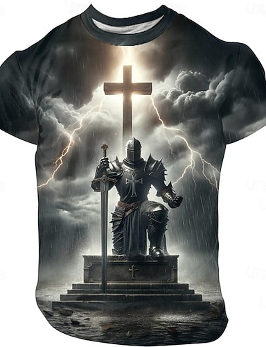 T-shirt 3D croisés chevaliers templiers pour hommes T-shirt à manches courtes T-shirt imprimé en 3D T-shirt col rond designer exagéré fête quotidienne vacances bleu vert gris été printemps vêtements