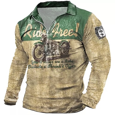 T-shirt graphique pour homme à manches longues de moto vintage - Ride Free T-shirt de biker avec une citation anti-rétrécissement vêtements de style de vie de motard