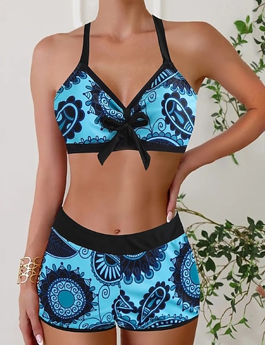 Leggings pour femmes Pantalons capri Haute élasticité Vacances Mode vintage Longueur mollet Taille mi-haute Impression florale graphique Respirant Doux Vacances Décontracté Quotidien Bleu œuf de mer