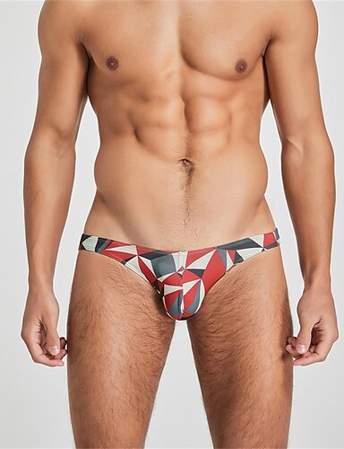 Homme 1 PC Slips Imprimer Spandex Mélange polyester / coton Lavable Confortable Géométrique Imprimés Photos Taille Basse Noir Rouge