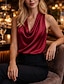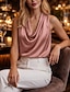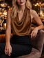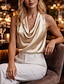 Femmes Satin Élégant Sans manches Col Bénitier Hauts Réguliers Occasionnel Quotidien Marron Sapin Dorée rose Champagne Or Noir Blanche Été Printemps
