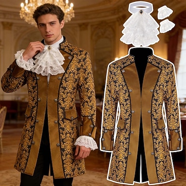 Rococo Médiéval Renaissance Manteau Costume élégant Collerette Manches longues Noble Tenue royale Déguisement Homme Fantaisie Halloween Carnaval Performance LARP Foire de la Renaissance Adulte