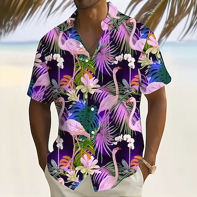 Homme Flamant rose Fleurs tropicales Feuille de palmier Chemise hawaïenne Chemise Boutonnée Chemise Aloha Manche Courte Hawaïen Vacances Été Printemps Col Rabattu Impression 3D chemises à col Une