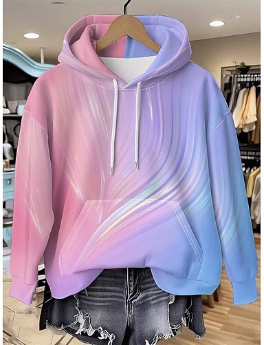 Femmes Sweat à capuche Cordon de serrage Avec Poches Imprimé Graphique Abstrait Mode Occasionnel manche longue À capuche Hauts Réguliers Occasionnel Rue Tenue Quotidienne Rose Claire Printemps