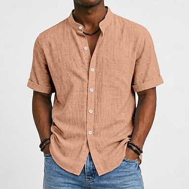 Homme Chemise Chemise en lin Chemise popover Chemise d'été Tenue de plage Chemise à col officier Uni Vacances Occasionnel Noir Blanche Jaune Rose Claire Manche Courte Col montant Été Vêtement Tenue