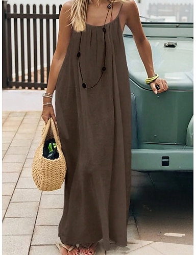 Femmes Robe maxi Robe fourreau Robe d'été Robe Nuisette Occasionnel Quotidien Coupe Ample Uni Sans manches Bretelles spaghetti Bleu Noir Blanche Vin Été
