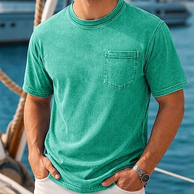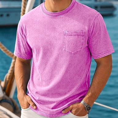 Homme Cocotier T-shirt Chemise jean Chemise 100% coton délavée à l'acide Manche Courte ancien Streetwear Occasionnel Occasionnel Maison Rue Automne & Hiver Été Printemps Noir Rose Dragée Vert clair