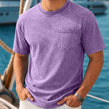 Homme T-shirt Chemise jean Chemise 100% coton délavée à l'acide Haut Henley Manche Courte Uni ancien Streetwear Occasionnel Teinture en vêtement Délavé Lavé Col montant Henley Occasionnel Maison Rue