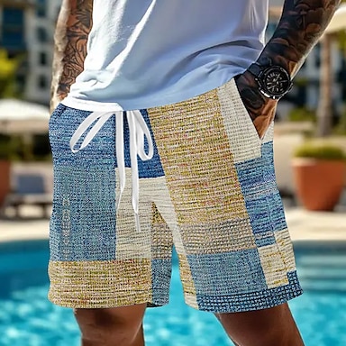 Homme Géométrique Bloc de Couleur Patchwork Short gaufré Shorts de survêtement Short décontracté Taille Moyenne Mode Décontractée Vacances Jogging Entraînement Texturé Taille élastique avec cordon de