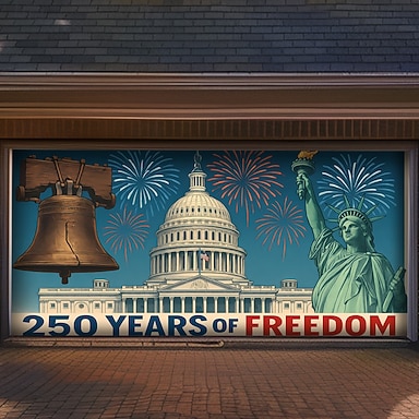4 juillet 2026 250e jour du souvenir Tapisserie Couverture de porte de garage Grande toile de fond suspendue Drapeau américain Vintage Impression 3D Fête patriotique Fonds de tir extérieur Décor pour