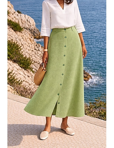 Femmes Jupe de vacances Jupe en faux coton et lin Mode style grand-mère côtier Occasionnel Été Maxi Taille Moyenne Jupes Couleur Unie Non Elastique Quotidien Vacances Noir Blanche bleu marine Vert Été