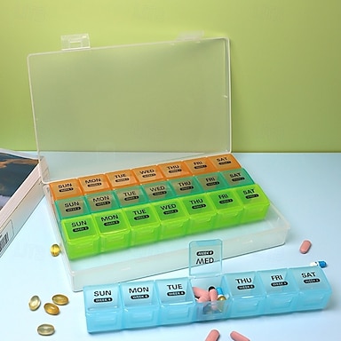 Pilulier mensuel grand format, étui de 28 jours avec compartiments extra larges, pilulier anti-poussière de 4 semaines, rappel de médicaments, boîte de voyage portable