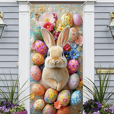 Décoration de porte lapin de Pâques, ornement festif avec œufs colorés et motifs floraux, idéal pour le printemps, les fêtes de Pâques et la décoration extérieure saisonnière.