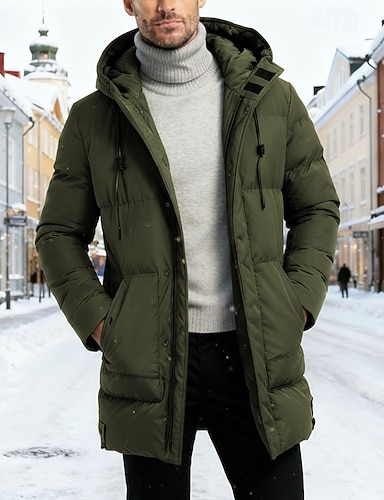 Homme Manteau d'Hiver Doudoune Rembourré Avec Poches Polyester Extérieur Occasionnel Quotidien Long Mode Streetwear Occasionnel Chaleur Thermique Hiver Couleur Unie Noir Vert Véronèse Gris Doudoune