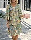 Femmes Chemise Bohème T-shirt Imprimé Fleuri Graphique Bohème ancien Occasionnel Manche Courte Col en V Hauts Longs Quotidien Vert et Bleu Jaune Rose Claire Été Printemps
