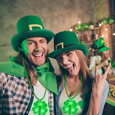 Lot de 2 colliers de perles lumineuses LED en forme de trèfle irlandais pour la Saint-Patrick, décoration de fête et de festival, collier trèfle vert pour les fêtes, événements et accessoires de