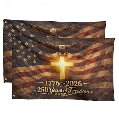 Lot de 2 drapeaux commémoratifs américains pour le 250e anniversaire de l'indépendance des États-Unis (250 ans de liberté), avec un aigle majestueux aux ailes déployées. Bannière patriotique