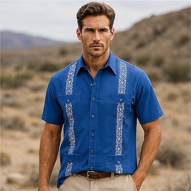 Homme Chemise Noir Blanche Vert Claire Rose Claire Vin Manche Courte Broderie Col de chemise Occasionnel Broderie Vêtement Tenue Élégant Vacances ancien Quotidien