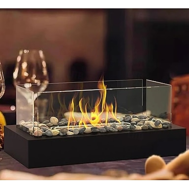 Foyer de table - petite cheminée de table en acier inoxydable plus sûre avec pavés pour les dîners, machine à s'mores