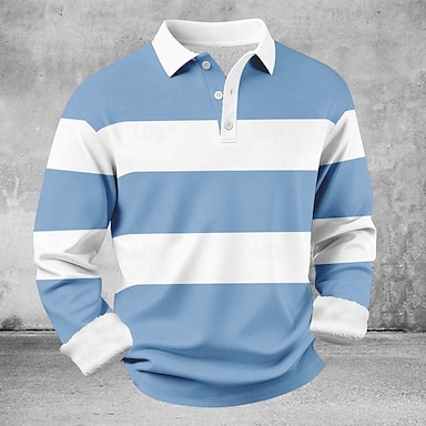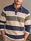 Homme Rayures horizontales Polo manche longue Polos Chemises à Col Vêtement décontracté de travaile Affaires Athleisure Tenue quotidienne Impression 3D Boutons Printemps Automne Hiver Bleu